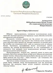 - "Официальный сайт Президента РК :: КАЗАХСТАН". 5 October 2008. Archived from the original on 5 October 2008.