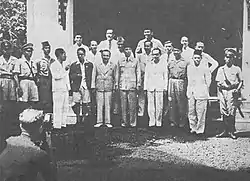 Indonesian had been under Japanese occupation since 1942, but by 1943, realizing they were losing the war, the Japanese appointed Indonesian advisors (Japanese: 参与, romanized: san'yo) to the administration and appointed nationalist leader Sukarno leader of a new Central Advisory Board (Chuo Sani-kai Japanese: 中央参議会) in Jakarta.[1] On 7 August, the day after the atomic bombing of Hiroshima, the Preparatory Committee for Indonesian Independence (Indonesian: Panitia Persiapan Kemerdekaan Indonesia) or PPKI was established. Sukarno was chairman, and Hatta vice-chairman. On 19 August 1945, this body created 12 ministries for Indonesia's first cabinet. The cabinet as formed contained sanyo as well as officials who had not worked with the Japanese. The cabinet was responsible to President Sukarno.[2][3]