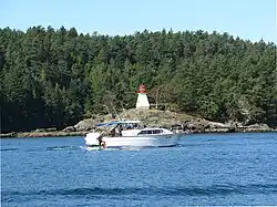 The Portlock Point Lighthouse, on the eastern extremity of the island, was built in 1895. It replaced a stake lighthouse built five years earlier. The light was automated in the late 1960s and rebuilt in 1987.[3] Portlock Point is now a part of Gulf Islands National Park Reserve.[2]