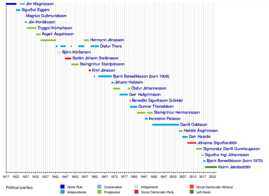 Term of office | Political Party | Cabinet | Election | President of Republic of Iceland Term of office Political Party | ||||
