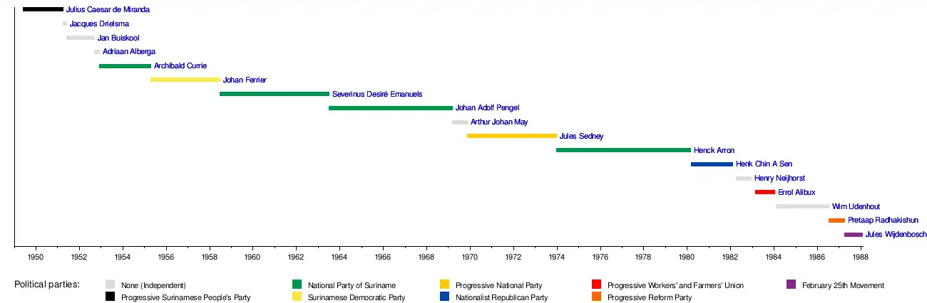 | Appointer | Governor of Suriname (1949–1975) President of Suriname (1975–1988) |