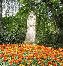 The monument to Primož Trubar by Franc Berneker. White marble, 1910. The statue stands in Trubar Park opposite the Museum of Modern Art in Ljubljana.