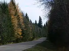 Some of the many animals are elk, moose, red foxes, beavers, white-tailed deer, badgers, river otters, red squirrels, black bears, coyotes, and timber wolves. The aspen forest / meadow mosaic in the southwest corner of the park is particularly unique as it sustains a growing herd of more than 400 plains bison, the only free-ranging herd in its original range in Canada that has a full array of native predators, including timber wolves.[5] Boreal woodland caribou from a regional population that is declining due to loss of habitat to forest logging range sometimes into the park, but their core habitat lies outside the park to the north. White-tailed deer, elk, and, moose are the common ungulates.[4] Flycatchers, Tennessee warblers, double-crested cormorants, red-necked grebes, brown creepers, nuthatches, three-toed woodpeckers, bald eagles, osprey, great blue herons, many species of ducks, and the common loon are just a few of the water fowl and birds which make their home in the park. There are 21 species of fish recorded in the park, including Iowa darter, yellow perch, brook stickleback, spottail shiner, cisco, northern pike (locally called "jack fish"), walleye (locally called "pickerel"), and lake trout.[4] Although most people visit the park in summer, the best wildlife watching is often in the winter.