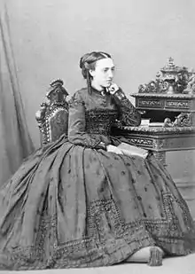 When Olga came to Russia as Cäcilie, her husband did not like her birth name and chose for her the name Olga Feodorovna, which she took upon her conversion to the Orthodox faith. The marriage took place on 28 August 1857 at the Chapel of the Winter Palace in Saint Petersburg.[4] Grand Duke Michael loved his wife deeply all his life and was under her strong influence; they were like polar opposites and this only seemed to cement their alliance.[5] Michael Nikolaevich was a kind, calm, rather dull man who would have been completely happy to devote himself only to the artillery and his family, and he did not shine with exceptional intellect. On the other hand, Olga Feodorovna was lively, sharp-tongued, witty society-lady, very fond of malicious tales and gossips – according to some of her contemporaries, gossip was her main raison d'être, or purpose for existing.