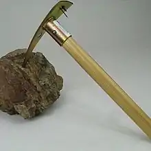 Prospecting pickaxes are used to scrape at rocks and minerals, obtaining small samples that can be tested for trace amounts of ore. Modern prospecting pickaxes are also sometimes equipped with magnets, to aid in the gathering of ferromagnetic ores. Prospecting pickaxes are usually equipped with a triangular head, with a very sharp point.