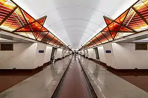 Prospekt Slavy (Russian: Проспект Славы (Avenue of Glory) is a Saint Petersburg Metro station on the Frunzensko–Primorskaya Line (Line 5) of the Saint Petersburg Metro. It was opened on 3 October 2019 as a part of the extension of the line to the south from Mezhdunarodnaya. The extension also included Dunayskaya and Shushary stations. Prospect Slavy is located between Mezhdunarodnaya and Dunayskaya.[1][2]