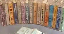 The starting point of Korean protest songs was the music culture of Korean students movements around 1970.[64] With criticizing about pop music or overcoming, it started that their own unique music culture having certain coriander layer and own existing method distinguished with pop culture.[64] a few songs called as 'Demo-ga' (demonstration songs) and others from the 1960s was chosen as 'Minjung-Gayo' (Korean protest songs).[64] There're 'Haebang-ga(Hangul; 해방가)',' Tana-Tana', 'Barami-bunda'(Hangul; 바람이 분다), 'Stenka Razin' and so on. After 1975, another songs like 'Hula-song[lower-alpha 1]', 'Jungui-ga' was added in the list.[64]