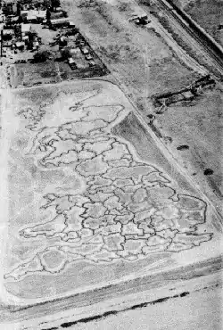 Brackstone then set about attracting tourism by planting thousands of strawberry plants in the pattern of a huge scale model of Great Britain. He intended to conduct weddings on his property, during which soil from the appropriate British county would be sprinkled on the ground. Implementation was delayed when Australian customs authorities seized the soil Brackstone had imported from the UK, and the entire enterprise was scuttled when the strawberry fields perished during a drought.[5]