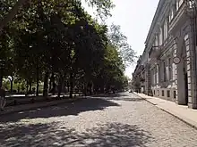 Prymorskyi Boulevard (Ukrainian: Приморський бульвар, romanized: Prymorskyi bulvar, lit. 'Seaside Boulevard'), also known by its Russian-language name as Primorsky Boulevard (Russian: Приморский бульвар) is a street located in the Historic Centre of Odesa, Ukraine. Stretching from Odesa City Hall to Vorontsov Palace, Prymorskyi Boulevard is one of Odesa's primary cultural landmarks, and is home to both the Potemkin Stairs and the statue of the Duke of Richelieu.[1]