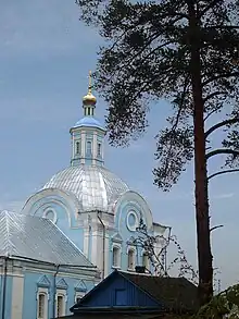 The village of Sloboda was first mentioned in 1724 in connection with the building of the church,[13] although the place had been inhabited long before that. Archeologists found ceramic products of the 4th or 3rd millennium BCE.[14] In the 4th-8th centuries, it was inhabited by the Krivichs.[14] People also lived in these lands at later times. Along the rivers and lakes (including Lake Sapsho), there was the trade route from the Varangians to the Greeks, and not so far away there was the second big city of the Principality of Smolensk called Verzhavsk (Вержавск).[15][16] In the 19th century, it was an outlying area with little economic activity.[17] It was the reason why Nikolay Przhevalsky bought an estate here in 1881. In the middle of the 20th century, Przhevalskoye-Sloboda became famous during World War II for its partisan defenders.[18] From September 1942 to September 1943, the front line ran through the village.[19] Almost all buildings were burnt. The partisans' staff was located in the partly ruined church.