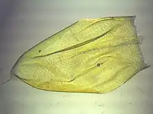 The leaves are yellow-green to dark green and are broadly ovate. They are distinctly recurved at the tip and have a single costa that extends midleaf. Stem leaves are between 2 mm and 2.5 mm in length, while branch leaves are slightly smaller and are found to be between 1 and 2 mm in length.[1]