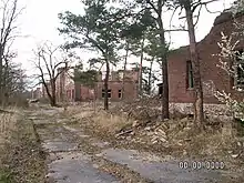 Dubbed the "Polish Chernobyl" due to its nuclear history and ghost town status,[2][3] previously known as the "Little Soviet Union", Pstrąże became a popular destination for adventurers, scrap collectors and thieves.[4] It has also been called the "Polish Pripyat" and the "Phantom Town".[1] In 2016, demolition of Pstrąże's former Soviet garrison buildings began.[5]