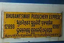 The Puducherry– Bhubaneswar Superfast Express is a Superfast train belonging to East Coast Railway zone that runs between Puducherry and Bhubaneswar in India. It is currently being operated with 22907/22908 train numbers on a weekly basis.[1] [2] [3]