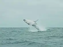 40 kilometres offshore is Isla de la Plata (named from its history as a pirate hideout, the Island of the Silver), also referred to as "The Poor Man's Galapagos."[1] There some species that also inhabit the Galapagos like the blue and red-footed booby, nazca booby, frigatebirds, albatross, pelican and other seabirds that are nesting in colonies can be found. The island is surrounded by coral reef and snorkeling is a popular activity. On the boat ride from Puerto Lopez to the island pods of dolphins can often be seen.