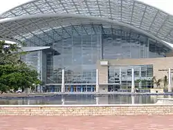 The Dr. Pedro Rosselló González Puerto Rico Convention Center (PRCC) (or Centro de Convenciones de Puerto Rico Dr. Pedro Rosselló González in Spanish),[1] or simply Puerto Rico Convention Center, is a convention center located in Isla Grande (recently named the Convention Center District), in San Juan, Puerto Rico owned by the Puerto Rico Convention Center District Authority, a government agency of Puerto Rico, and managed by ASM Global . With a total space of 600,000-square-foot (55,742 m2) and designed by tvsdesign, it is the largest convention center in the Caribbean and one of the most technologically advanced in the Americas.[2]