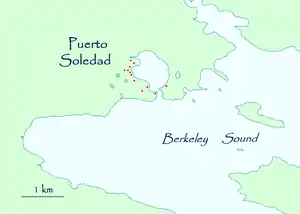 Puerto Soledad (Puerto de Nuestra Señora de la Soledad, English: Port Solitude) was a Spanish military outpost and penal colony on the Falkland Islands, situated at an inner cove of Berkeley Sound (French: Baie Accaron,[1] Spanish: Bahía Anunciación).