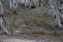 Low bush-pea grows in forest, woodland and heathland, usually in stony places and is found on the coast and tablelands of New South Wales south from the Macleay River to a few places in far eastern Victoria.[2][3][4][5]