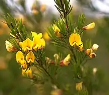 Pultenaea viscidula, commonly known as dark bush-pea,[2] is a species of flowering plant in the family Fabaceae and is endemic to South Australia. It is an erect shrub with branches that are sticky when young, linear to cylindrical, channelled leaves with stipules at the base, and yellow to orange and yellow-red to green flowers.
