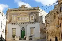 In his 1882 Report on the Phœnician and Roman Antiquities in the group of the islands of Malta, Antonio Annetto Caruana referred to the building as "an old Greek house." By that time, the remains had been incorporated into the house of the parish priest of Żurrieq, and the tower was "in complete preservation" while the adjacent walls' cornice which had been depicted by Houël no longer existed.[12] Today the remains of the building still survive within the priest's residence (known as the Domus Curialis) and in adjacent properties at nos. 134–138, Carmel Street (Maltese: Triq il-Karmnu),[13] with the tower being located within the archpriest's private garden.[6]