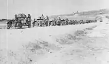 The 7th (Meerut) Division began their march to Beirut in three columns. The leading column consisted of the Corps Cavalry Regiment, one company of infantry and the 2nd Light Armoured motor Battery.[15][16][17] The second column consisted of the 3rd and 4th Companies Sappers and Miners, the 121st Pioneers with the 53rd Sikhs and 2nd Battalion Leicestershire Regiment (28th Brigade).[18] The remainder of the 28th Brigade with the 19th and 28th Brigades of infantry, the 261st, 262nd and 264th Brigades of Royal Field Artillery (RFA) and the 522nd Field Coy, RE completed the 7th (Meerut) Division.[19]