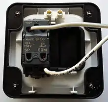 A push switch (button) is a momentary or non-latching switch which causes a temporary change in the state of an electrical circuit only while the switch is physically actuated. An automatic mechanism (i.e. a spring) returns the switch to its default position immediately afterwards, restoring the initial circuit condition. There are two types:[1]