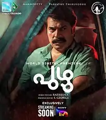 Puzhu (Malayalam: പുഴു; transl. Worm) is a 2022 Indian Malayalam-language psychological drama film directed by debutant Ratheena and jointly written by Harshad and Suhas-Sharfu.[1] The film stars Mammootty & Parvathy Thiruvothu in the lead role. Cinematography of the film is handled by Theni Eswar and the film score and songs are composed by Jakes Bejoy.