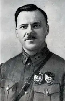 Pyotr Mikhailovich Filatov (Russian: Пётр Михайлович Филатов; 18 August 1893 – 14 July 1941) was a Red Army lieutenant general. A veteran of World War I, Filatov rose to brigade command during the Russian Civil War and was decorated for his actions. He held division command in the 1920s and 1930s between military education and served as a corps commander and deputy commander of an army and a front in the late 1930s. Shortly before the beginning of Operation Barbarossa in June 1941, he became commander of the 13th Army in Belarus, which suffered heavy losses in the opening weeks of the war. He was mortally wounded in an air raid on 8 July and died a week later.