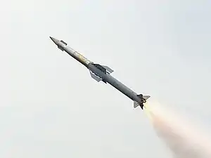 The first test firing of the missile took place on 4 June 2017. This was followed by the second successful test on 3 July 2017.[18] The test was conducted from Chandipur, Odisha. Around 100 scientists are working as part of the missile development program led by Defence Research and Development Laboratory (DRDL). DRDO's other labs including Research Centre Imarat (RCI), Research & Development Establishment (Engineers) (R&DE(E)) and Integrated Test Range (ITR) are also contributing to the missile development effort.[19] On 22 December, the missile was test fired for the third time. The test was reported to be a success.[20][21] The fourth test took place on 8 October 2018 and was reported to be successful.[22] Fifth test was successfully performed on 26 February 2019.[23] The sixth test was conducted on 4 August 2019 at 11:05 am from a mobile truck-based launcher at the launch complex-3 of the Integrated Test Range (ITR) at Chandipur.[24] The seventh-test took place on 23 December 2019 from Abdul Kalam Island, which included two firings of the missile. With this test, the development of the missile was declared complete.[7]