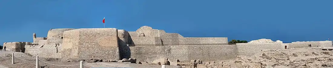 The Qal'at al-Bahrain (Arabic: قلعة البحرين; Portuguese: Forte de Barém), also known as the Bahrain Fort or Portuguese Fort, is an archaeological site located in Bahrain. Archaeological excavations carried out since 1954 have unearthed antiquities from an artificial mound of 12 m (39 ft) height containing seven stratified layers, created by various occupants from 2300 BC up to the 18th century, including Kassites, Greeks, Portuguese and Persians. It was once the capital of the Dilmun civilization and was inscribed as a UNESCO World Heritage Site in 2005.[1][2]