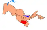 Qashqadaryo Region (Uzbek: Qashqadaryo viloyati, Қашқадарё вилояти, قشقهدریا ولایتی; old spelling Kashkadarya Region, Russian: Кашкадарьинская область) is one of the regions of Uzbekistan, located in the south-eastern part of the country in the basin of the river Qashqadaryo and on the western slopes of the Pamir-Alay mountains. It borders with Tajikistan, Turkmenistan, Samarqand Region, Bukhara Region and Surxondaryo Region. It covers an area of 28,570 km2.[1] The population is estimated 3,408,345 (2022), with 57% living in rural areas.[2][3] The regional capital is Qarshi (278,300 inhabitants).