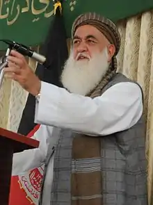 Later, he became a leading member of the National Front, a political party opposed to the Karzai administration.[5]