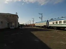 Qońirat, also spelled as Kungrad[2] (Karakalpak: Қоңырат, Qońırat), formerly known as Zheleznodorozhny (Russian: Железнодорожный, until 1969), is a city in Karakalpakstan, Uzbekistan, located in the Amu Darya delta[2] on the left bank of the river. It is the seat of Qońirat district.[3] Its population is 37,100 (2016).[1]