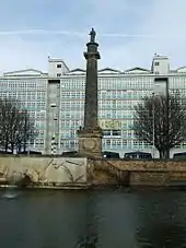 The gardens have a central avenue of trees aligned with the Wilberforce Monument to the east, which is fronted by a pool with fountains. The statue of William Wilberforce atop a large Doric column was moved to this site in 1935 and originally dominated the gardens.[1] However, the construction of Sir Frederick Gibberd's building for Hull College behind the column in 1962 has reduced its impact.