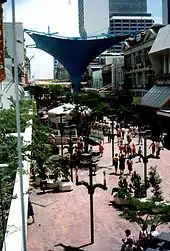The Queen Street Mall is a pedestrian mall located on Queen Street in the centre of Brisbane, Queensland, Australia.[1] The mall extends approximately 500 metres (1,600 ft) from George Street to Edward Street, and has more than 700 retailers over 40,000 square metres (430,000 sq ft) of retail space, which includes six major shopping centres. It was intended to bring more people into the central business district.