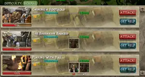 Selection interface in Dawn of the Dragons, each quest having different requirements and rewards