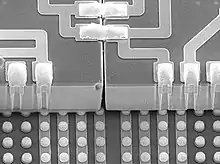 QP nodules are created as an integral part of the microchip using standard back end of the line semiconductor device fabrication techniques. Solder is then electroplated on top of the nodules to enable the chip to chip interconnection with sub-micron alignment accuracy.[3]