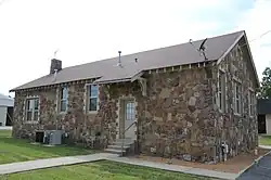 The Quitman Home Economics Building is a historic school building on 2nd Avenue in Quitman, Arkansas. It is a single story masonry structure, with walls of fieldstone and brick trim around the openings. The roof is gabled, with exposed rafter ends, and a shed-roof extension over the main entrance, supported by large brackets, all in the Craftsman style. It was built in 1938 with funding from the National Youth Administration.[2]