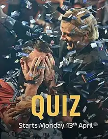 Quiz is a British drama television serial by James Graham, based on Graham's play of the same name[2] commissioned by William Village[3] and the book Bad Show: the Quiz, the Cough, the Millionaire Major by Bob Woffinden and James Plaskett.[4] It is directed by Stephen Frears[5][6][7][8] and consists of three hour-long episodes.[9] The series focuses on the disgraced Who Wants to Be a Millionaire? contestant Charles Ingram, a former army major in the Royal Engineers, and how he unexpectedly won the £1,000,000 jackpot on the quiz show in 2001, followed by a criminal trial in which he and his wife were convicted of cheating their way to success.[10]