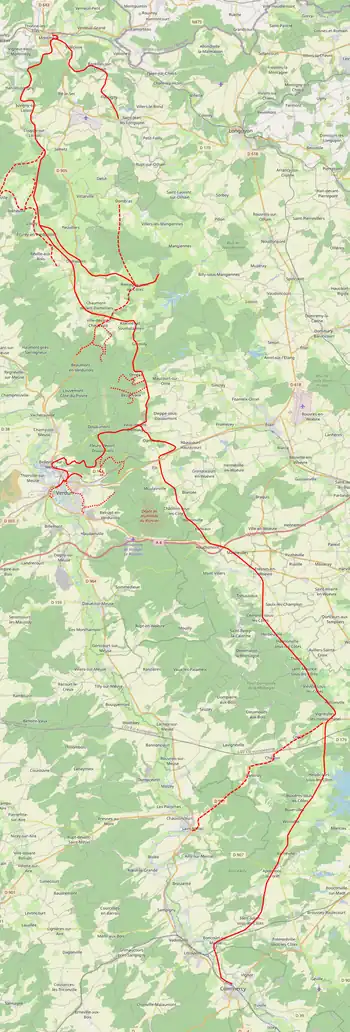 The Réseau de la Woëvre was a 149 km (93 mi) long metre-gauge rail network that operated from 1914 to 1938 in France. A 66 km (41 mi) branch line to Commercy branched off from the 61 km Verdun-Montmédy main line at Vaux-devant-Damloup.[14]