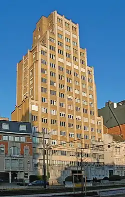The Résidence de la Cambre is the first high-rise building constructed in Brussels, Belgium. It was built in 1938–39, according to the plans of the architect Marcel Peeters, in a style inspired by New York Art Deco architecture.[1] The 17-story residential tower, which stands at 20, Boulevard Général Jacques/Generaal Jacqueslaan, near the Place de l'Étoile/Sterrenplein in Ixelles, was listed as a protected monument on 14 July 2005.[2][3] In April 2007, €740,000 were granted by the Government of the Brussels-Capital Region to renovate the facade and roof.[4]