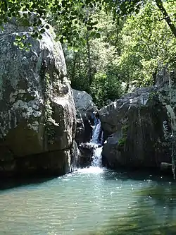 The Río de la Miel is a short river in the south of Spain, emptying into the Bay of Gibraltar at Algeciras. It falls over a distance of 350 metres including some waterfalls and working water mills. As the port of Algeciras expanded, docks on the river became marooned inland, and within the town much of the river is now culverted.