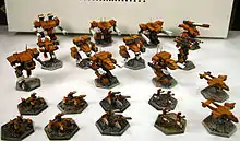 CAV models are all cast in N-Scale by Reaper Miniatures. Currently there are around 100 different models available for the game, with prices starting around $8.00(US) and reaching $25.00(US).[2]