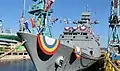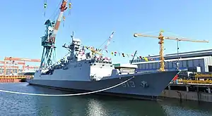 - "Hyundai Heavy Industries launched the third Incheon class frigate ROKS Jeonbuk". www.navyrecognition.com. Retrieved 2021-07-08.