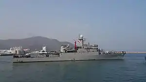 The Pohang class is a series of corvettes built by different Korean shipbuilding companies. The class consists of 24 ships and some after decommissioning were sold or given to other countries. There are five different types of designs in the class from Flight II to Flight VI.[1]