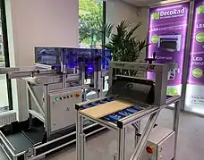 UV curing is used in applications where there is a need for converting or curing inks, adhesives, and coatings.[4] UV-cured adhesive has become a high speed replacement for two-part adhesives, eliminating the need for solvent removal, ratio mixing, and potential life concern.[5] It can be used in the flexographic, offset, pad, and screen printing processes, where UV curing systems are used to polymerize images on screen-printed products, ranging from T-shirts to 3D and cylindrical parts. It is used in fine instrument finishing (guitars, violins, ukuleles, etc.), pool cue manufacturing and other wood craft industries.[6] Printing with UV curable inks provides the ability to print on a very wide variety of substrates such as plastics,[6] paper, canvas, glass, metal,[7] foam boards, tile, films, and many other materials.[8]