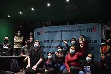 In late April 2021 it was reported that the group was "alive" and preparing for a potential second Scottish independence referendum.[15][16] Hustings were organised in the run-up to the May 2021 Scottish Parliament election.[17] An online Radical Independence Conference was held in June 2021, offering workshops on planning acts of civil disobedience to pressure the UK Government.[18][19][20][21][22] During the UN COP26 climate change conference in Glasgow, on 6 November, RIC organised the independence bloc of the Global Day of Action for Climate Justice march, which was the city's largest protest in nearly two decades.[23] The group organised under the slogan “It’s Scotland’s oil, keep it in the soil”. RIC also used COP26 as an opportunity to network with self-determination activists from other stateless nations which were excluded from the official UN conference.[23]