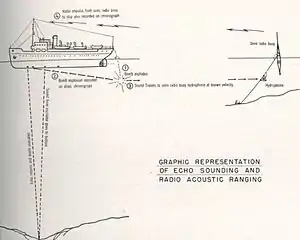 Radio acoustic ranging was an early step along the path to modern electronic navigation systems, oceanographic telemetering systems, and the development of marine seismic surveying. The technique also laid the groundwork for the development of sonars capable of looking ahead of and to the sides of vessels.[11]