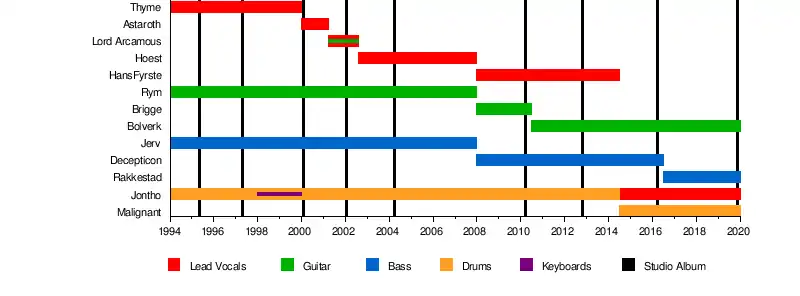 | Past members | Hans Hoest Jerv Rym Thyme Astaroth Lord Arcamous Brigge Decepticon |