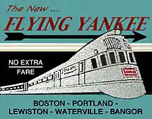 One of the most popular and busiest trains to be operated out of Portland was the Boston-Portland-Bangor "Flying Yankee" route which was run jointly by the MEC and Boston & Maine Railroads making three daily departures (two southbound and one northbound) from Portland Union Station. On April 1, 1935 this service was inaugurated with a then ground breaking diesel-powered stainless steel articulated streamline train set. Based at Portland, its three unit 142-seat integrated consist was the first such non-steam streamliner to enter service in North America east of the Mississippi, and just the third overall in the United States after the Chicago, Burlington and Quincy Railroad's almost identical "Pioneer Zephyr" (1934–1960) the Union Pacific Railroad's M-10000 (1934–1942).