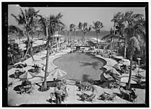 The Raleigh Hotel in the South Beach section of Miami Beach, Florida is an art deco building designed by L. Murray Dixon. It is located at 1775 Collins Avenue. The hotel was closed in 2017 after damage from Hurricane Irma.[1] In 2019 it was purchased by a group of developers including SHVO and Deutsche Finance America.[2] In March 2022, it was announced that the hotel would be restored and operated by Rosewood Hotels, reopening in 2025 as Rosewood The Raleigh Miami Beach.[3]